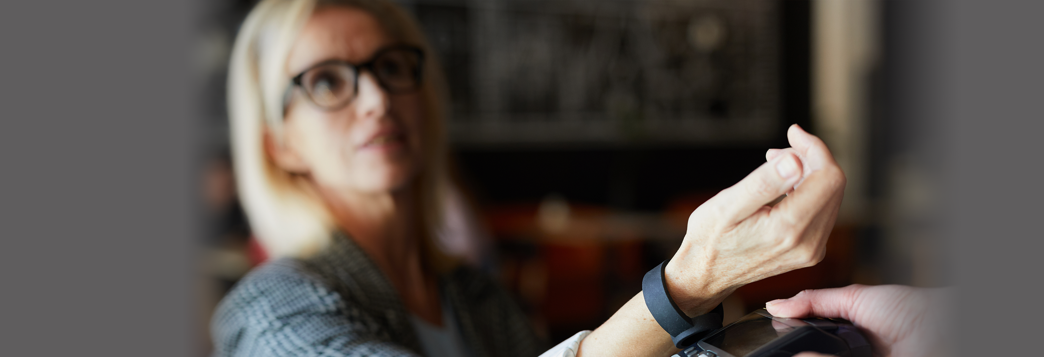 Double-click the side button and hold the Apple Watch up to the contactless reader.